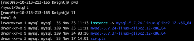 ln -s mysql-5.7.37-linux-glibc2.12-x86_64 instance