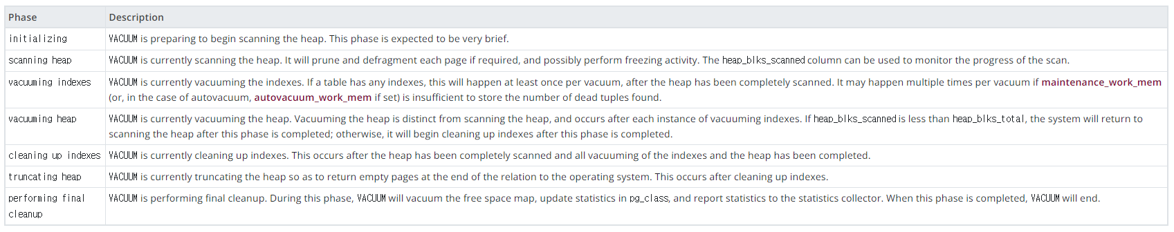 Vacuum public.x 를 수행하게 되면 다음과 같은 순서대로 수행된다.
